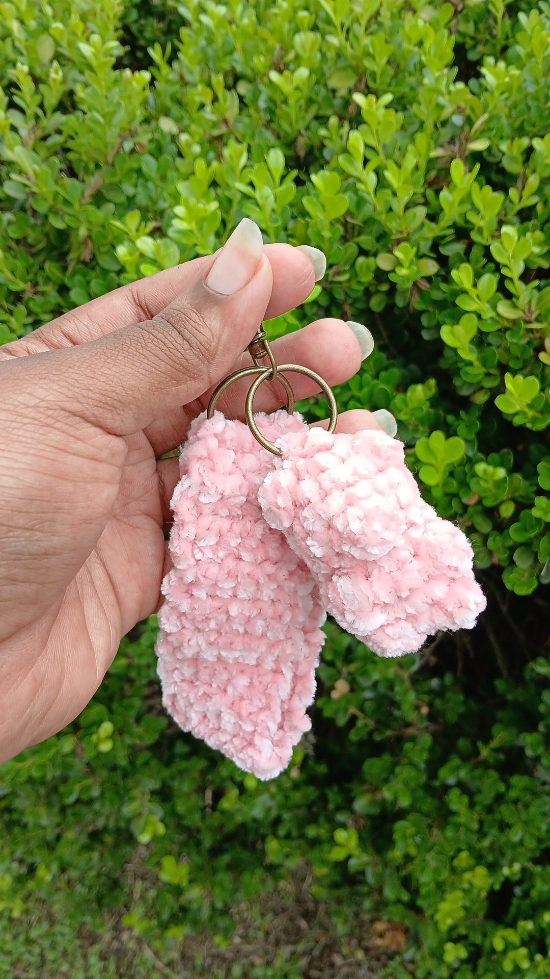 Velvet soft little bear on a keychain,with an 8 inch around wristlet.